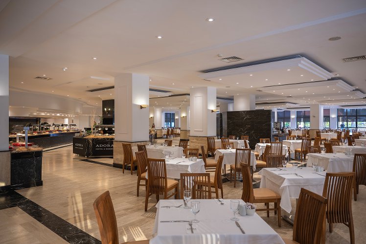 In the vicinity of the sandy beach lies the hotel Adora Hotel & Resort. There is a 24h shuttle between the hotel and the airport 24h a day. The beach is patrolled by a lifeguard. On the beach there is also a clubhouse. Here, there are sun loungers available. At the beach there is a bar serving refreshing drinks. The hotel has a 24h reception, a lobby bar, Wi-Fi, internet access, a lift, a shop, a boutique, a hairdresser, a jacuzzi, parking spaces as well as a TV lounge. In the outdoor area of the property you will find a garden as well as a seasonally heated and supervised pool (open all year), where sun loungers are available for free. For children there is also a children's pool. Inside the hotel you can use an indoor pool. You can store your valuables in the safe, and your luggage in the hotel`s storage room. For your entertainment, the hotel offers a disco. For the young hotel guests there is a playground. For very young guests, highchairs can also be provided. For the smallest children prams can be rented in the hotel. There is also a laundry and ironing service. Ironing equipment can also be borrowed at the hotel. For your comfort the hotel page will ensure you are looked after. If necessary, you can contact the medical centre at any time. For conventions and other business meetings, the hotel offers a business centre as well as a (auditorium-style) conference area with printer. If you want to explore the holiday region, you can use the car rental service close to the hotel. For guests on their honeymoon, the hotel has special offers such as champagne or a basket of fruit in the room. In your hotel, a lot of focus is placed on sustainability. This includes the provision of soap and shampoo dispensers, organic food, a central room air-conditioning and environmentally-friendly cleaning. The hotel requires that all guests pay a deposit upon arrival.