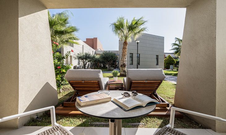Guests can relax while gazing towards the Aegean Sea, the swimming pool or the colourful landscape of the gardens. At the hotel’s restaurants, guests can enjoy a feast of Mediterranean flavours and international dishes that will satisfy even the most discerning palate. Refreshing cocktails and snacks are always served with a smile while relaxing at one of the hotel bars.