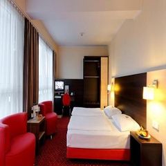 A 10-minute drive from Berlin’s Schonefeld Airport, this hotel offers a 24-hour bar with Sky TV. The A100 and A113 motorways are just 5 minutes away. Several international restaurants are within a 5-minute walk away and a 15-minute walk takes visitors to the Gropius-Passagen shopping center and the Johannisthaler Chaussee Underground Station. The property provides air-conditioned rooms with soundproofed windows and boast warmly furnished interiors to guarantee a relaxing and quiet stay. Guests will receive a complimentary bottle of water upon arrival. They will be able to work out in the gym or simply relax on the terrace. In addition, travelers can use the on-site garage during their stay for added comfort and convenience.
