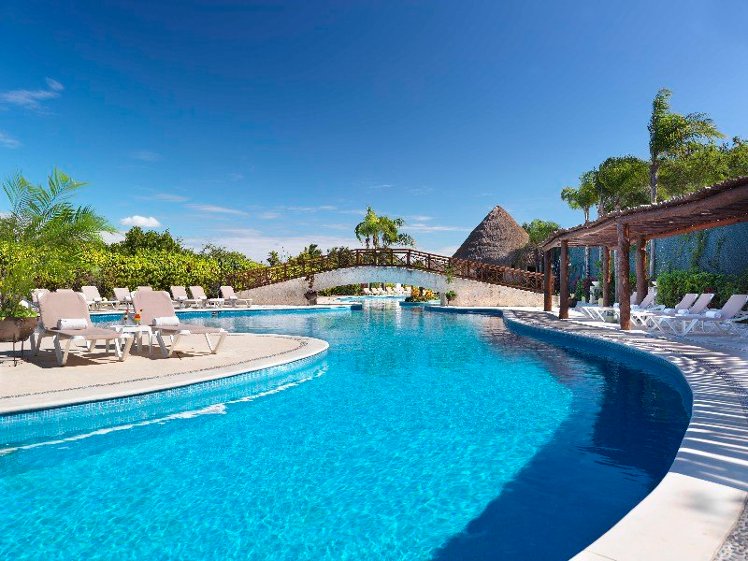 This charming eco-resort enjoys an oceanfront location 20 minutes' drive from Playa del Carmen. The Xcaret ruins are just a ten-minute drive from the resort, while the celebrated Mayan ruins at Tulum can be reached by car in just over half an hour. Alternatively, guests might spend a relaxing, sunny holiday lounging by the hotel's lavish outdoor pool with a drink from the pool bar. Children will delight in the playground and splash zone, and adults can enjoy a relaxing massage or facial in the spa. The spacious rooms boast double hot tubs and relaxing hammocks on private balconies overlooking the lush forest surrounding the hotel. The hotel offers a range of great in-room services including a welcome drink upon arrival and champagne at sunset, and the three restaurants serve international dishes, sushi, and innovative Mexican-Italian fusion cuisine, all for a wonderful holiday on the Mayan Riviera.