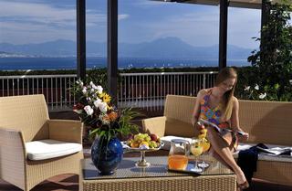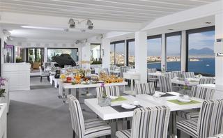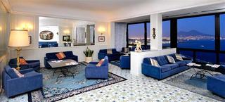 The hotel has a superb location, on the top of Posillipo Hill, with a beautiful view of the Gulf of Naples and the Vesuvius in the distance. The hotel is a bit out of the way, but perfect for those guests who want to stay away from the noise and bustle of the city and enjoy a peaceful stay. It is near the funicular that takes you to the historic center of Naples. From the port, it is easy to take trips to Caprii and Ischia, which are lovely.