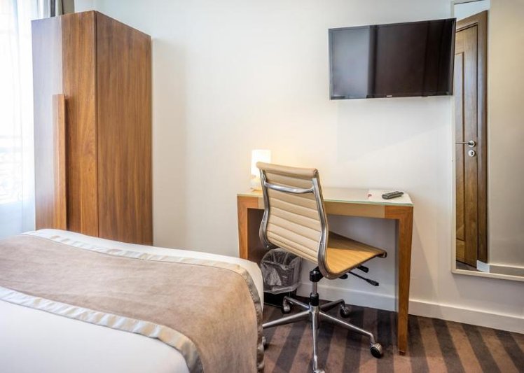 Located in Levallois-Perret's business district, the Crystal Hotel offers convenient access to La Défense and Rue du Faubourg Saint-Honore, both within a 5-minute drive. This hotel provides 20 guestrooms equipped with flat-screen TVs, complimentary Wi-Fi, and private bathrooms with showers, complimentary toiletries, and hair dryers. Daily housekeeping and ironing boards (upon request) are also provided. Guests can enjoy a buffet breakfast each morning (for a fee) and limited room service. Additional amenities include a 24-hour front desk, luggage storage, an elevator, and on-site self-parking (subject to charges). Nearby attractions include the Arc de Triomphe and Champs-Élysées, both approximately 2. 9 miles away.
