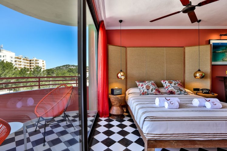 The hotel Cubanito Ibiza Suites (adults only), especially popular with honeymooners, is around 15 km from Ibiza (San antonio around 1 km). The nearest beach is around 1 km from the hotel. The tourist centre is about 1 km away. The nearest shopping facilities are located approx. 1 km from the hotel, a supermarket can be reached after around 100 m. It is 1 km from the hotel to the nearest bars and restaurants. For evening dancing you will find a nightclub in a distance of approx. 10 km. Further entertainment facilities such as a cinema are approx. 1 km away. The following attractions can be reached from the hotel: Cafe Mambo (approx. 2 km away), O'Beach (approx. 3 km away), Club Amnesia (approx. 10 km away), Ibiza Old Town (approx. 16 km away) and Cala Bassa (approx. 14 km away). For mobility during your holiday, there are a taxi rank (around 10 m away), a bus stop (approx. 1 km away), a car rental company and a motorcycle rental. For medical treatment in emergencies there is a hospital around 2 km away. The airport (IBZ) is approx. 23 km away.