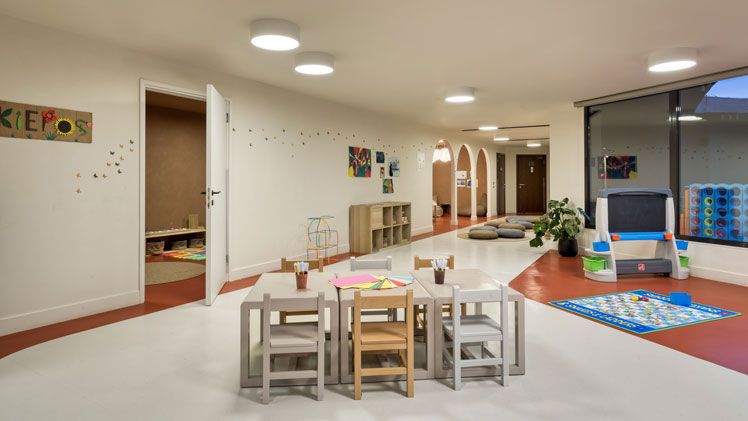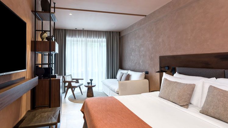 The resort boasts a wide array of modern facilities designed to cater to guests of all ages. There are three swimming pools, including a dedicated adults-only pool and a kids’ splash pool, as well as a beach club offering reserved sunbeds. The Soma Spa provides wellness treatments, while a fitness centre caters to active guests. Families will appreciate the Montessori-inspired kids’ club and crèche, which offer supervised activities. The resort also features the CORE Spianada, a lively cultural hub with open-air cinemas, live performances, and artisanal markets, ensuring that there is always something to experience.