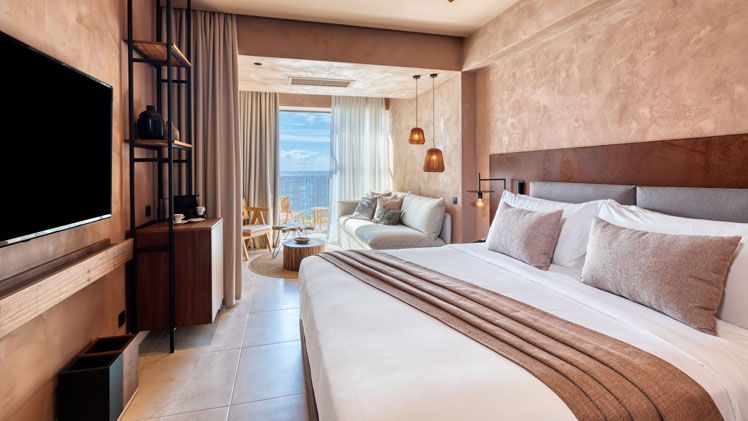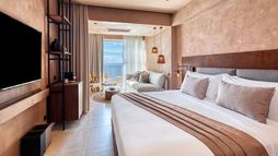 Accommodation at Domes of Corfu is both stylish and functional, offering a range of options to suit various needs. The rooms and suites are elegantly decorated, with earthy tones and natural materials. Many rooms offer stunning views of the Ionian Sea or the surrounding mountains, while others provide direct access to swim-up pools. Families can opt for larger suites with separate living areas, while couples may prefer the more intimate retreats. All rooms are well-appointed with modern amenities, including spacious balconies, en suite bathrooms, and luxury bedding.