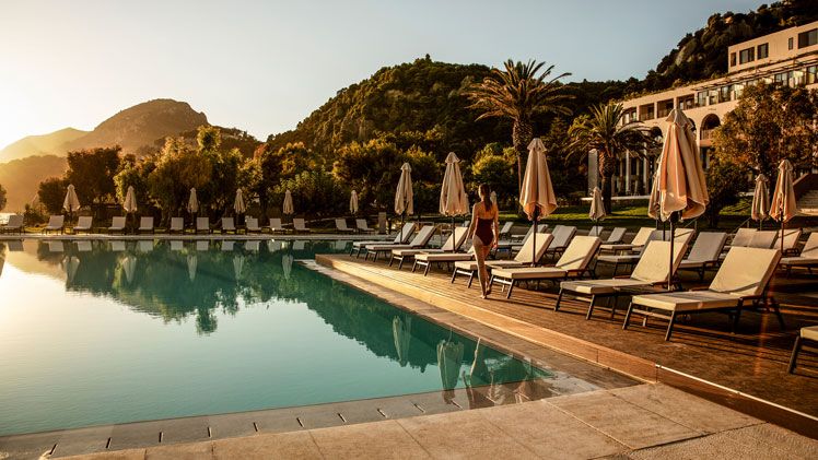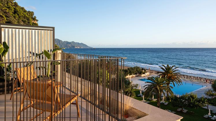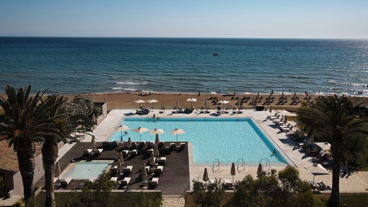 Positioned on Corfu’s Glyfada Beach, the resort offers direct access to one of the island’s most well-known blue flag beaches. Just a short drive from Corfu’s historic Old Town, the location provides a perfect balance between tranquillity and accessibility. Guests can explore the local cultural and historical attractions with ease while enjoying the secluded beach atmosphere. With its unique blend of natural beauty and proximity to Corfu’s vibrant town, the location appeals to all types of holidaymakers.