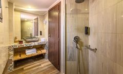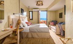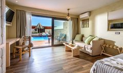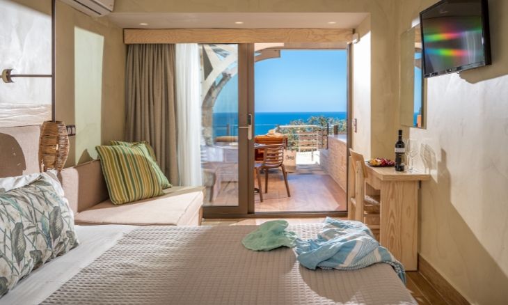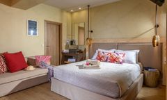 The resort’s 105 suites and rooms are thoughtfully designed to offer comfort and elegance. With options ranging from deluxe rooms with sea views to expansive two-bedroom suites with private pools, each accommodation is tailored to meet diverse preferences. Plush queen-size beds, COCO-MAT mattresses, and modern bathrooms ensure restful stays. Outdoor spaces, including terraces with jacuzzis or pools, provide an ideal setting to unwind while admiring the serene surroundings. Family-friendly accommodations include configurations suitable for children, ensuring a seamless experience for all guests.