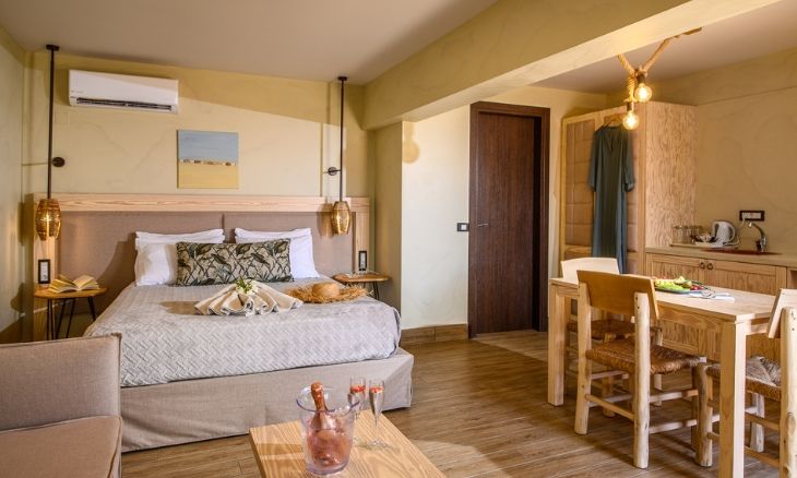 Conveniently situated just 29 kilometres from Heraklion International Airport, Esperides Resort is easily accessible while retaining a sense of seclusion. The resort is surrounded by the timeless charm of Koutouloufari, a picturesque village known for its cobblestone streets and traditional architecture. Guests can explore the nearby beaches of Hersonissos, enjoy a stroll through local markets, or venture to nearby archaeological sites and wineries, ensuring a diverse and enriching holiday experience.