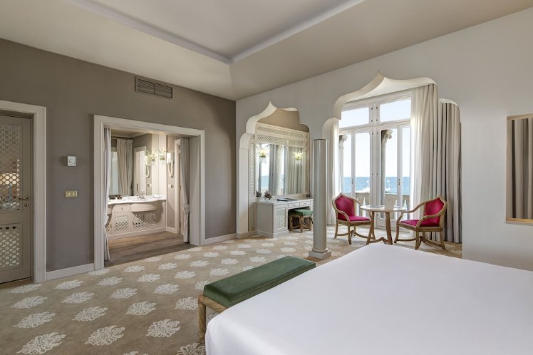 Our enchanting five-star hotel is located on Venice Lido, a sun-kissed island surrounded by turquoise waters and golden beaches, just a 15-minute complimentary boat ride from St. Mark's Square. Relax in splendid rooms or suites, unwind by the pool, or enjoy golf at a nearby course. This luxurious retreat is ideal for family holidays, romantic getaways, conferences, weddings, and special events. The hotel features two restaurants, a bar, a conference center, and a pool and wellness center. The 196 rooms are equipped with luxury bathrooms, coffee-making facilities, minibars, safes, complimentary Wi-Fi, air conditioning, and bathrobes and slippers.