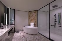 The hotel is directly connected to Jakarta's most luxurious shopping and entertainment complex, "Plaza Indonesia" with convenient access to key corporate offices and business districts. The MRT Station is located with convenience for the travel enthusiasts seeking Jakarta's best sites. Travelers looking for adventure are within walking distance to culture and iconic attractions.138 lavish and spacious guest rooms and suites with a magnificent oversized bathrooms, customized JAXSON'S oval sit down bathtubs, separate rainforest shower complimented with opulent marble double vanities, with an open plan atmosphere.