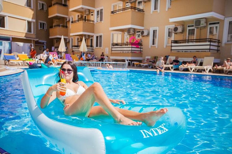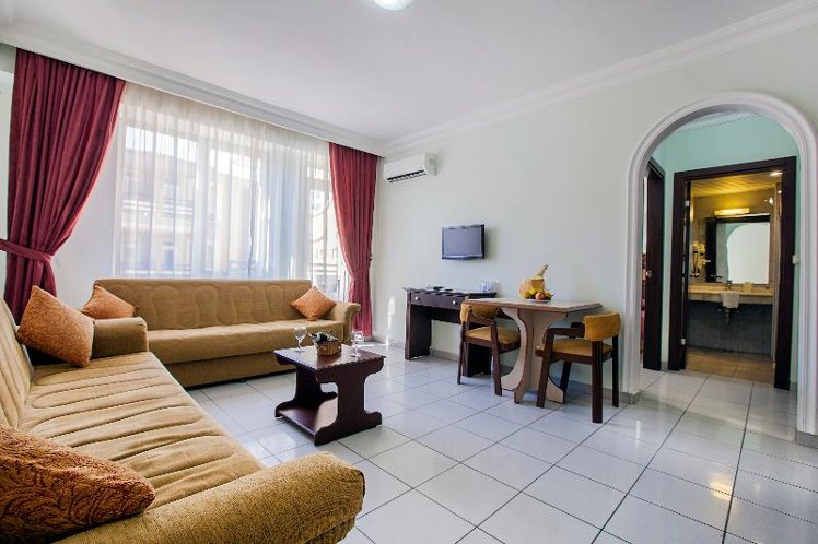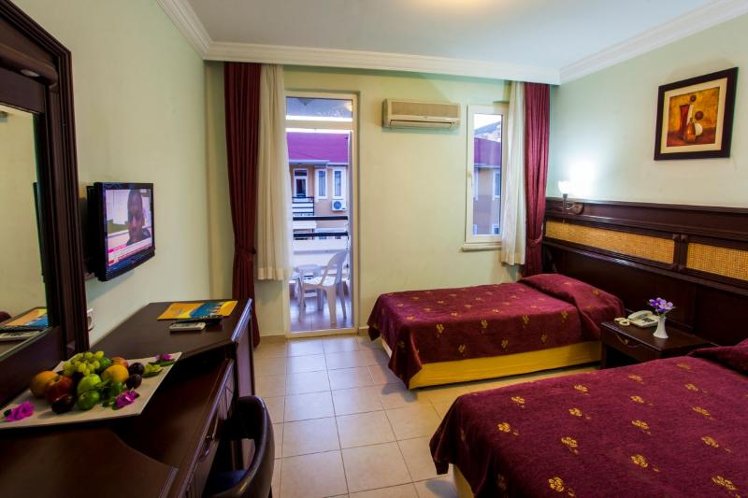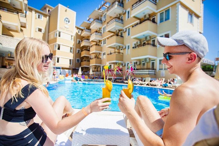 located in Kleopatra beach; it takes 1 km to Alanya center, 50 m to the beach, 118 km to Antalya Airport. Taxi and minibus are available for your transportation. The hotel lies 2 km west of the centre of Alanya and just 100 metres from Cleopatra Beach. Public transport and the main bus station are close by and other amenities such as shops and restaurants are within 5 minutes’ walk. Gazipasa Airport is approximately 46 km from the hotel and Antalya Airport is around 123 km away. Refurbished in 2010, the air-conditioned city hotel is an ideal base offering 123 comfortable accommodation units with excellent amenities. The rooms are well- furnished and equipped with satellite TV, air conditioning and a balcony. Guests can enjoy the hotel’s outdoor swimming pool with children’s swimming section, or relax in the SPA area with sauna and hammam available.