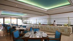 The resort offers an impressive selection of dining options, featuring Mediterranean and international cuisine. The main restaurant serves a varied buffet with live cooking stations, while a choice of à la carte restaurants includes Italian, Pan-Asian, and traditional Cretan. Seafood lovers can delight in the fish restaurant, offering fresh Mediterranean seafood dishes. For a lighter bite, there is a snack corner and a creperie. Guests can enjoy drinks throughout the day at the various bars, including the relaxing Champagne, Wine & Sushi Bar, and poolside bars serving refreshing cocktails.