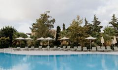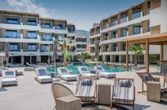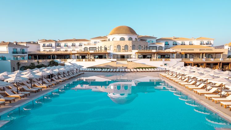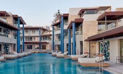 The resort is located on the northern coast of Crete, directly on the pristine Blue Flag beach of Anissaras, a serene area near Hersonissos. It offers easy access to the vibrant nightlife and shopping areas of Hersonissos, whilst maintaining a peaceful atmosphere for relaxation. Its prime beachfront location provides uninterrupted views of the Aegean Sea, and the resort is approximately 24 kilometres from Heraklion International Airport, making it a convenient destination for travellers.