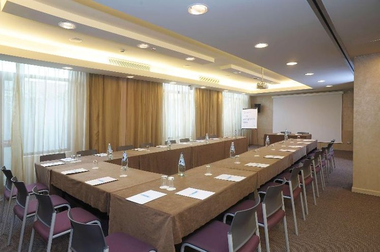 Located in the commercial Peschiera Borromeo district and along Idroscalo, Milan's popular artificial lake, the NH Linate Hotel provides convenient access to Milan Linate Airport, while also serving as a great base for exploring the art, architecture, and shopping of the city center. To visit Milan's Duomo, Leonardo da Vinci's “The Last Supper” fresco, Sforza Castle, Fondazione Prada, and luxury shopping at the Galleria Vittorio Emanuele II, hotel guests can take public transportation from the nearby bus stop at the intersection of Via Fratelli Bandiera and Via IV Novembre. Stadio Giuseppe Meazza, the stadium home of the A. C. Milan and Inter Milan football teams in the Serie A league, is a half hour's drive from the hotel. NH Linate's 67 fresh, modern rooms are decorated in a minimalist style with paintings of Amedeo Modigliani above the beds. Each room offers free Wi-Fi and a flatscreen TV with international channels. The hotel offers a range of dining options including a continental breakfast buffet, the Jet Lag Restaurant serving Milanese and Italian dinner specialties in an informal setting, an Open Bar offering 24 hour grab-and-go snacks, and the NH Linate lobby bar. The hotel has 5 meeting rooms on-site which can accommodate events for as many as 200 guests.