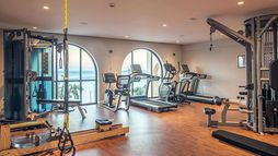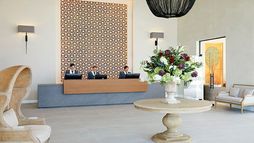 The property is equipped with a large freshwater infinity pool accompanied by a pool bar and restaurant where guests can dine beside the water, together with sun loungers, umbrellas and poolside towel service. A spa complex delivers face and body therapies with professional therapists, and a gym provides facilities for strength and cardio training. Public spaces include a relaxed Orangerie patio lounge and a small chapel courtyard where Greek coffee and traditional sweets are offered on scheduled occasions, alongside attentive guest services such as room service and housekeeping.