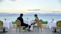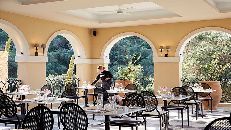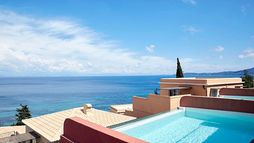 Cuisine at the hotel draws on local Corfiot and wider Mediterranean influences, delivered across a mix of à la carte and buffet venues. Apaggio presents a refined à la carte menu focused on fresh local ingredients and contemporary Greek flavours, while San Giovanni provides an all-day dining environment with panoramic sea views and a mix of buffet and à la carte choices. The pool bar Aquavit serves lighter dishes alongside the pool, and guests also have access to a wider selection of restaurants within the MarBella Collection via the Dine Around programme, which includes Italian, Greek, Pan-Asian and French options as well as several buffet restaurants and a dining allowance for eligible guests.