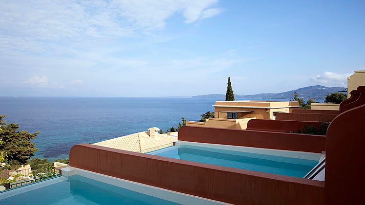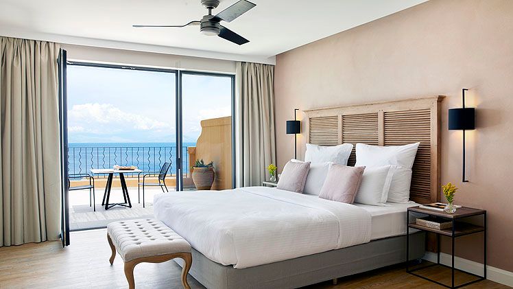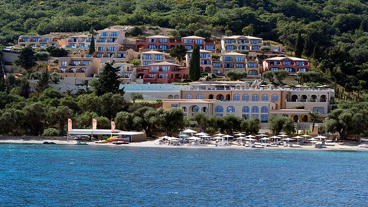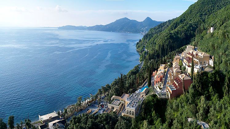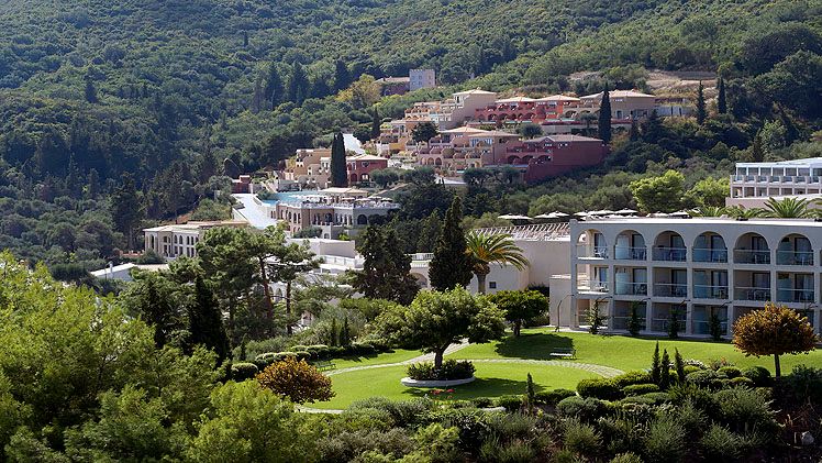 Occupying a coastal position with sweeping views of the Ionian Sea, the hotel benefits from direct frontage to a blue-flagged beach that facilitates swimming and a selection of water sports. The hotel’s location makes Corfu Town readily accessible by a short drive, enabling guests to visit historic streets and local attractions before returning to the quieter setting of the resort. The coastal setting reinforces the hotel’s focus on sea-view accommodation and outdoor living spaces.