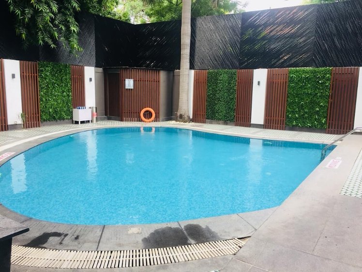 The Hotel is located close to the Moolchand metro station, 5 km from the Jawaharlal Nehru Stadium and 4.5 km from the Lotus Temple. Facilities and services include a 24 hrs reception, wireless internet throughout the hotel, elevator, one restaurant, lounge bar, room service 24 hrs, outdoor swimming pool, fitness room, business center, meeting room, conference room and car parking.