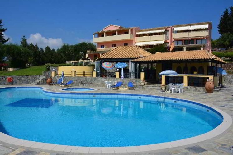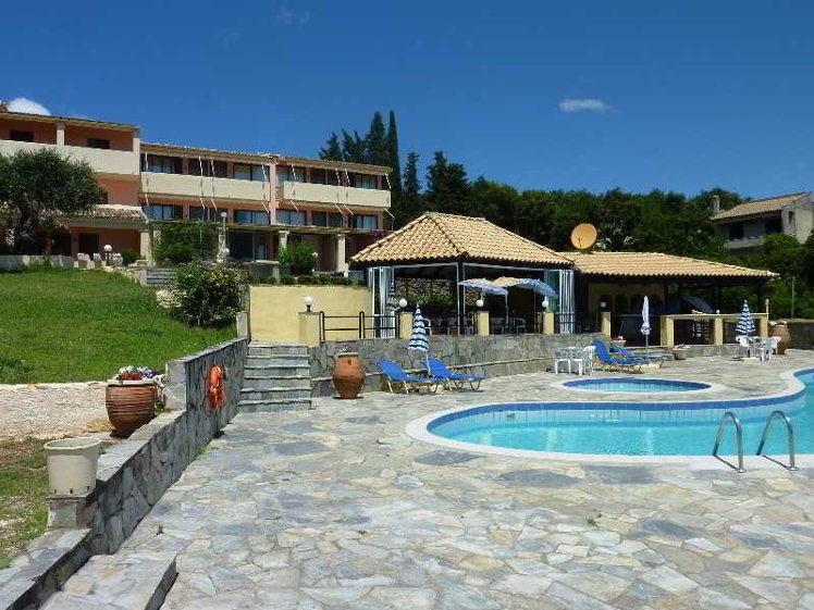 Standing on a hill in Dassia, one of the most important resorts in Corfu, the appartment complex is set in greenery, lemon and olive tree gardens. All rooms have a furnished balconies looking on the private and chidren's pool, the ocean and the mountains to enjoy exquisite views, all apartments are modern and spacious for a relaxing stay in the quiet surroundings. Yet, the beach and shops are within walking distance, due the bus stop to the old town; nearby beaches are within 10 minutes and the airport is 12 km. The staff is willing to give the best in the service for a pleasant holiday on the island.