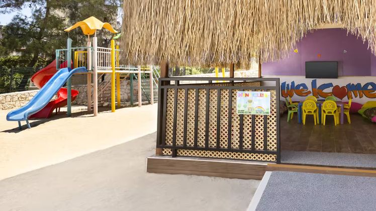 With an impressive outdoor pool, complete with exhilarating waterslides, guests can make a splash or simply bask in the Mediterranean sun. For those seeking relaxation, the resort offers a serene relaxation pool, as well as a fully equipped spa and fitness centre. From lively evening entertainment to a dedicated Mini Club for younger guests, there’s something for everyone to enjoy.