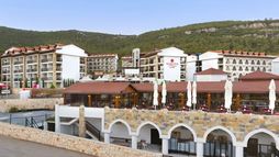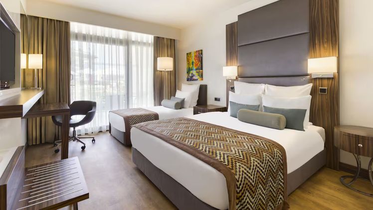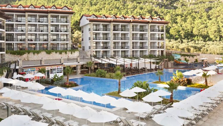 The resort features a diverse array of facilities catering to every whim and fancy. Take your pick from spacious and comfortable accommodation options, each equipped with modern amenities including complimentary Wi-Fi, satellite TV, and private balconies offering captivating views. Indulge in culinary delights at the buffet-style restaurant offering a delectable fusion of Turkish and international cuisines, or opt for a more intimate dining experience at the à la carte Turkish or fish restaurants. Thirsty? Quench your thirst at one of the beach or poolside bars, where an assortment of refreshing beverages awaits.