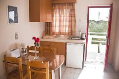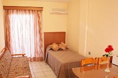 Sandy’s Studios & Log Villas in Kos-City has 48 rooms, spread over 2 floors. The gravel beach is 800 m from the hotel and the town of Kos is 3 km away. To make your stay more comfortable a mini market and a reception are available. The staff in this 2 storey hotel speaks English. A playground for children is available. Mobility on holiday is simplified through bike hire. A fresh water swimming pool, seasonally open with a separate children’s pool is available. For convenience, refreshing drinks are offered at the pool bar. Sunshades and sunbeds are available free of charge at the pool. Accessible from the hotel, airport Kos (25 km) and disco (2 km). The hotel is within easy reach of bars and restaurants and bus stops. For your entertainment the hotel features a TV lounge. Vehicles may be parked in the parking lot.