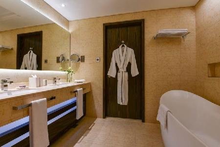 There is a 24h shuttle service between the hotel and the airport (for a fee) 24h a day. To reach the beach a shuttle (for a fee) is provided. The GPS-verified accommodation Sofitel Dubai The Obelisk is equipped with a 24h reception (check-in is possible around the clock), a lobby bar, Wi-Fi, internet access, a lift, a jacuzzi, showers and changing rooms, a first aid kit as well as parking spaces. In the outdoor area of the property you will find a garden as well as a supervised pool (open all year), where sun loungers, sun umbrellas and pool towels are available for free. There is also a children's pool with a non-swimming area. You can store your valuables in the safe, and your luggage in the hotel`s storage room. In addition, the hotel Sofitel Dubai The Obelisk is video-monitored 24h a day. For your entertainment, the hotel offers a cinema. For the young hotel guests there is a playground. For very young guests, kid`s chairs, highchairs and cots can also be provided. There is also a laundry and ironing service. Ironing equipment can also be borrowed at the hotel. For your comfort, in addition to the concierge service the hotel page will ensure you are looked after. If necessary, you can contact the medical centre. Guests at the accommodation can get a wake-up call from the hotel personnel. The energy supply is 220 Volts. For conventions and other business meetings, the hotel offers a conference area with tables, printer, scanner, overhead projector, internet access as well as a catering service. At the reception, tickets are offered for excursions in the area. For guests on their honeymoon, the hotel has special offers such as a romantically-decorated room, personalised rooms/articles, rooms with a particularly romantic location and view, special honeymoon packages, romantic dishes in the restaurant, champagne, sparkling wine, a present, a basket of fruit or flowers in the room. In your hotel, a lot of focus is placed on sustainability. This includes the hotel`s own recycling bins, the provision of soap and shampoo dispensers and ecological meals. That is why the hotel Sofitel Dubai The Obelisk was also awarded a sustainability certificate. The hotel requires that all guests pay a deposit upon arrival. Euro/Master Card is accepted as means of payment. Due to its barrier-free facilities , such as an automatic hotel door, a hotel door that can be opened manually, barrier-free entrances, wheelchair accessible rooms and wheelchair-accessible bathrooms, the hotel is also suitable for wheelchair users.