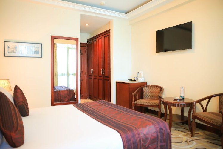 Located in Addis Ababa, Swiss Inn Nexus Hotel is in the business district and convenient to Zefmesh Grand Mall and Shola Market. Make yourself at home in one of the 66 individually furnished guestrooms, featuring refrigerators and LCD televisions. Your pillowtop bed comes with down comforters and Egyptian cotton sheets. Rooms have private balconies. Complimentary wireless Internet access keeps you connected, and satellite programming is available for your entertainment. Private bathrooms have deep soaking bathtubs and rainfall showerheads. Take in the views from a rooftop terrace and a terrace and make use of amenities such as complimentary wireless Internet access. Additional amenities at this Art Deco hotel include wedding services, a television in the lobby, and barbecue grills.