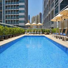 The hotel Vida Emirates Hills Hotel, especially popular with honeymooners, is located approx. 10 km from a beach. The tourist centre is about 10 km away. The nearest shopping facilities are located approx. 5 km from the hotel, a supermarket can be reached after around 1 km. It is 10 km from the hotel to the nearest bars and restaurants. Also the nearest disco is around 10 km away. Further entertainment facilities such as a cinema and a theatre are approx. 10 km or approx. 25 km away. The following attractions can be reached from the hotel: Dubai Eye (approx. 4 km away), Dubai Marina (approx. 3 km away), Burj Khalifa (approx. 20 km away), Gold Souq (approx. 40 km away) and Dubai Sky diving (approx. 10 km away). For mobility during your holiday, there are a taxi rank (around 1 km away) and a bus stop (approx. 3 km away). An underground station is located in a distance of approx. 2 km. Locations further away can be reached via the railway station in a distance of around 2 km. For medical treatment in emergencies there is a hospital around 3 km away. The airport (AUH) is located in the immediate vicinity. The hotel and airport are linked by a shuttle. Another airport (DXB) is located approx. 34 km away.