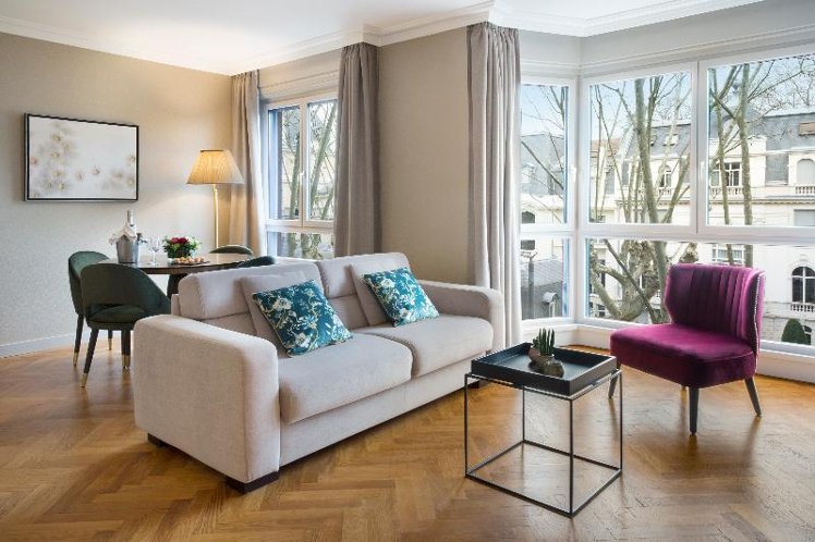 This charming hotel offers a tranquil escape near the renowned Parc de la Tête d'Or, featuring a zoo, lake, and botanical garden. Situated on the bustling Boulevard des Belges, it's surrounded by shopping and entertainment, yet provides a peaceful retreat. The commercial center, Cité Internationale, and Interpol are a short drive away. Renovated in 2021, this elegant hotel offers 88 suites across 7 floors. Guests enjoy a welcoming atmosphere and comfortable services, including a 24-hour reception desk, currency exchange, and lift in the impressive, air-conditioned foyer. A conference room, internet access, a cozy café, a bar, and a restaurant are also available. Room and laundry services, along with parking, are provided for guest convenience. The modern, tastefully decorated suites feature private bathrooms, hairdryers, direct-dial telephones, satellite TV, internet access, and central heating. A kitchenette, minibar, microwave, tea and coffee making facilities, and a king-size or double bed are also included. Each suite boasts a balcony with stunning garden views. Leisure options include a sauna and sport room (currently closed for refurbishment, reopening planned for January 2024). A breakfast buffet is served daily. À la carte and set menus are available for lunch and dinner, offering delicious cuisine. Please note, the restaurant and bar are closed on Saturdays and Sundays.